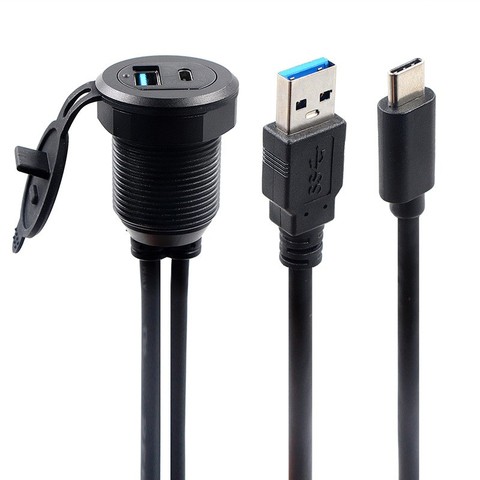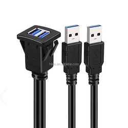 Square Dual Single Port USB 3.0 Panel Flush Mount Extension Cable Buckle Yacht Car Truck Boat Motorcycle Dashboard Hitec